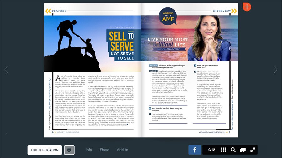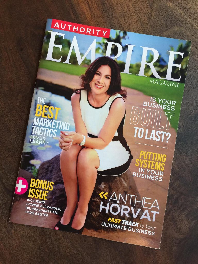 Better than a book, your high-gloss magazine with your new photo on the cover can be handed to people as your calling card that stands out above and beyond a book because people will actually READ the magazine. They’ll read about how you help people with your expertise and see your calls to action and your offers and ring you up.